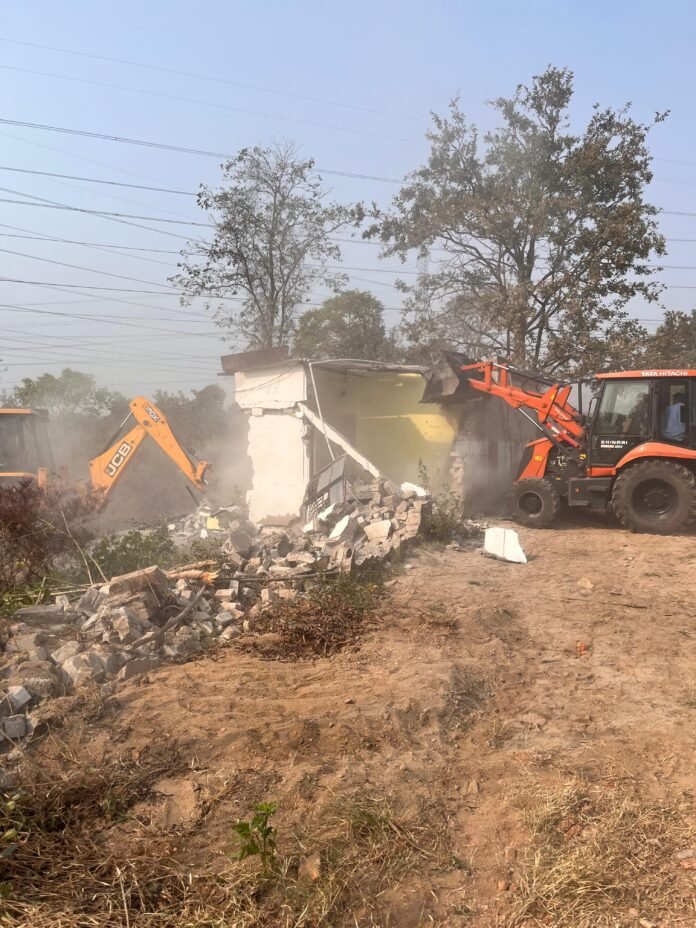09 फरवरी 2026 को अतिक्रमणकारियों को बेदख़ली नोटिस जारी कर 15 फरवरी 2026 तक बेजा कब्जा हटाने के निर्देश दिए गए थे। परंतु निर्धारित तिथि तक कब्जा खाली न किए जाने के कारण आज 23 फरवरी 2026 को संयुक्त कार्रवाई कर अवैध रूप से निर्मित फ़ार्म हाउसों एवं व्यावसायिक संरचनाओं को हटाया गया।