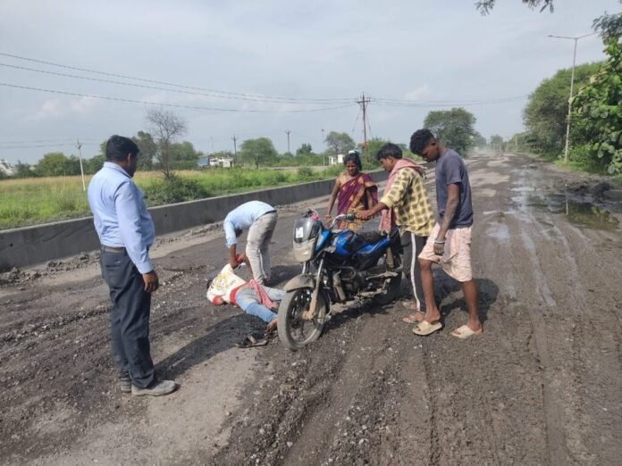 खराब सड़क फिर बनी दुर्घटना का कारण, बाइक सवार 3 लोग घायल..