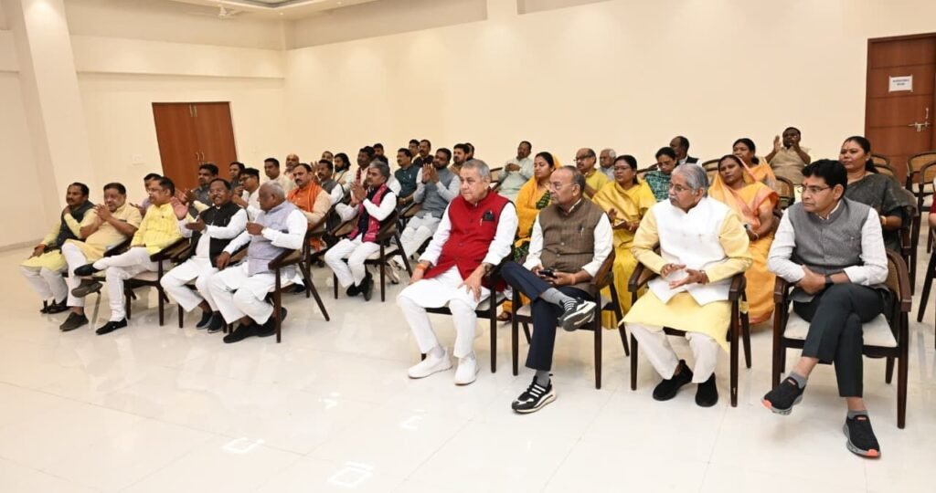 रायपुर।12 मार्च को—छत्तीसगढ़ विधानसभा के बजट सत्र के नौवें दिन—नवा रायपुर में मुख्यमंत्री केआवास पर देर रात BJP विधायक दल की एक अहम बैठक हुई। इस बैठक की अध्यक्षता छत्तीसगढ़ के मुख्यमंत्री विष्णु देव साय ने की। बैठक में उपमुख्यमंत्री अरुण साव, संसदीय कार्य मंत्री केदार कश्यप और BJP प्रदेश अध्यक्ष किरण सिंह देव मौजूद थे।
