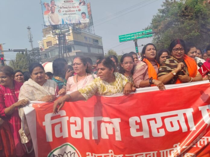 एआई समिट में कांग्रेस के अभद्र कृत्य के विरोध में भाजपा महिला मोर्चा ने किया धरना प्रदर्शन