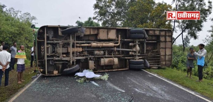 गुरुवार को फरसाबहार से अंबिकापुर जा रही एक राजधानी बस (क्रमांक CG 15 EF 5028) अचानक अनियंत्रित होकर पलट गई। एक महिला की मौके पर ही मौत हो गई, उसका शव बस के नीचे फंस गया। शव निकालने के प्रयास जारी हैं।