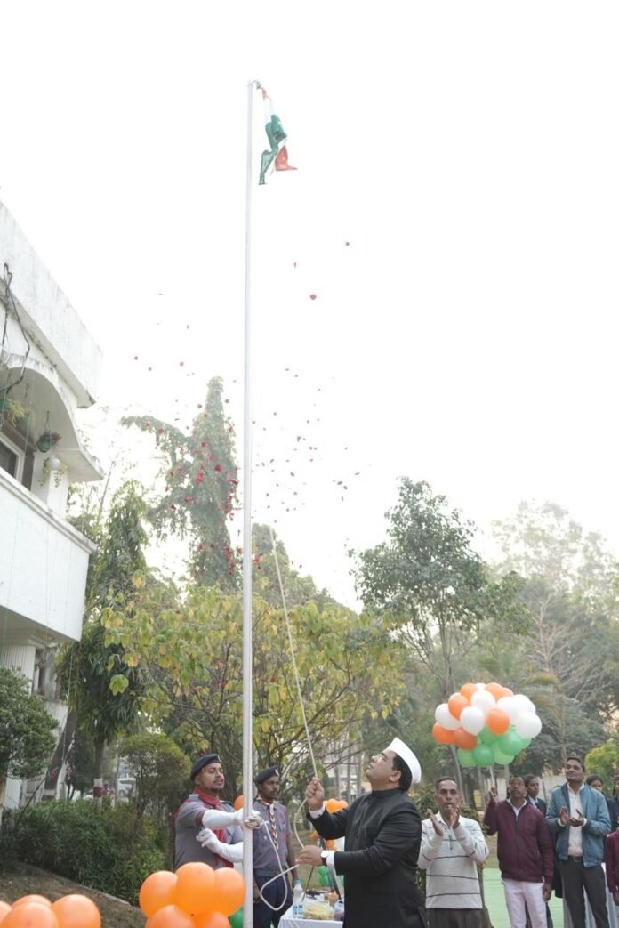 कोरबा।जिला कार्यालय (कलेक्ट्रेट) कोरबा में कलेक्टर  कुणाल दुदावत ने गणतंत्र दिवस के अवसर पर ध्वजारोहण किया। उन्होंने गणतंत्र दिवस की सभी अधिकारी कर्मचारी को बधाई और शुभकामनाएं दी। इस दौरान सहायक कलेक्टर क्षितिज गुरभेले, अपर कलेक्टर देवेंद्र पटेल, ओंकार यादव सहित सभी विभागीय अधिकारी कर्मचारी उपस्थित थे।