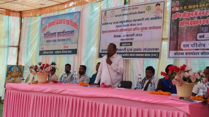 KORBA : पसरखेत में तेंदूपत्ता संग्रहण पूर्व शाखकर्तन की कार्यशाला संपन्न,उप प्रबंध संचालक एसडीओ कंवर ने विस्तृत रूप से दी जानकारी